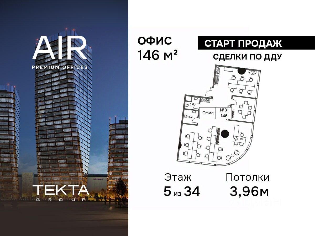 Продается помещение свободного назначения 146.00 м² на 5 этаже бизнес-центра AIR.