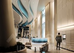 Пространства лобби обладают двусветной структурой, площадью до 500 кв. м, высотой потолков 8 м и витражным остеклением, что обеспечивает высокую степень естественного освещения.