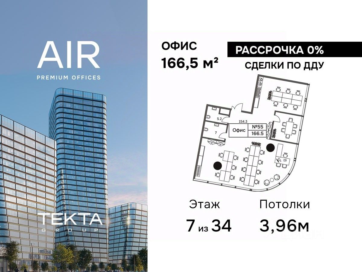 Продается помещение свободного назначения 166.50 м² на 7 этаже бизнес-центра AIR.
