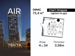 Продается помещение свободного назначения 73.40 м² на 4 этаже бизнес-центра AIR.