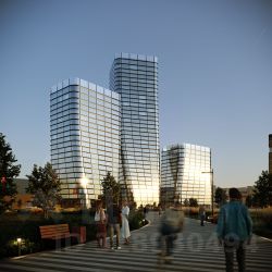• Угловые блоки: Офисы с молированным панорамным остеклением и обзором 270 градусов.
