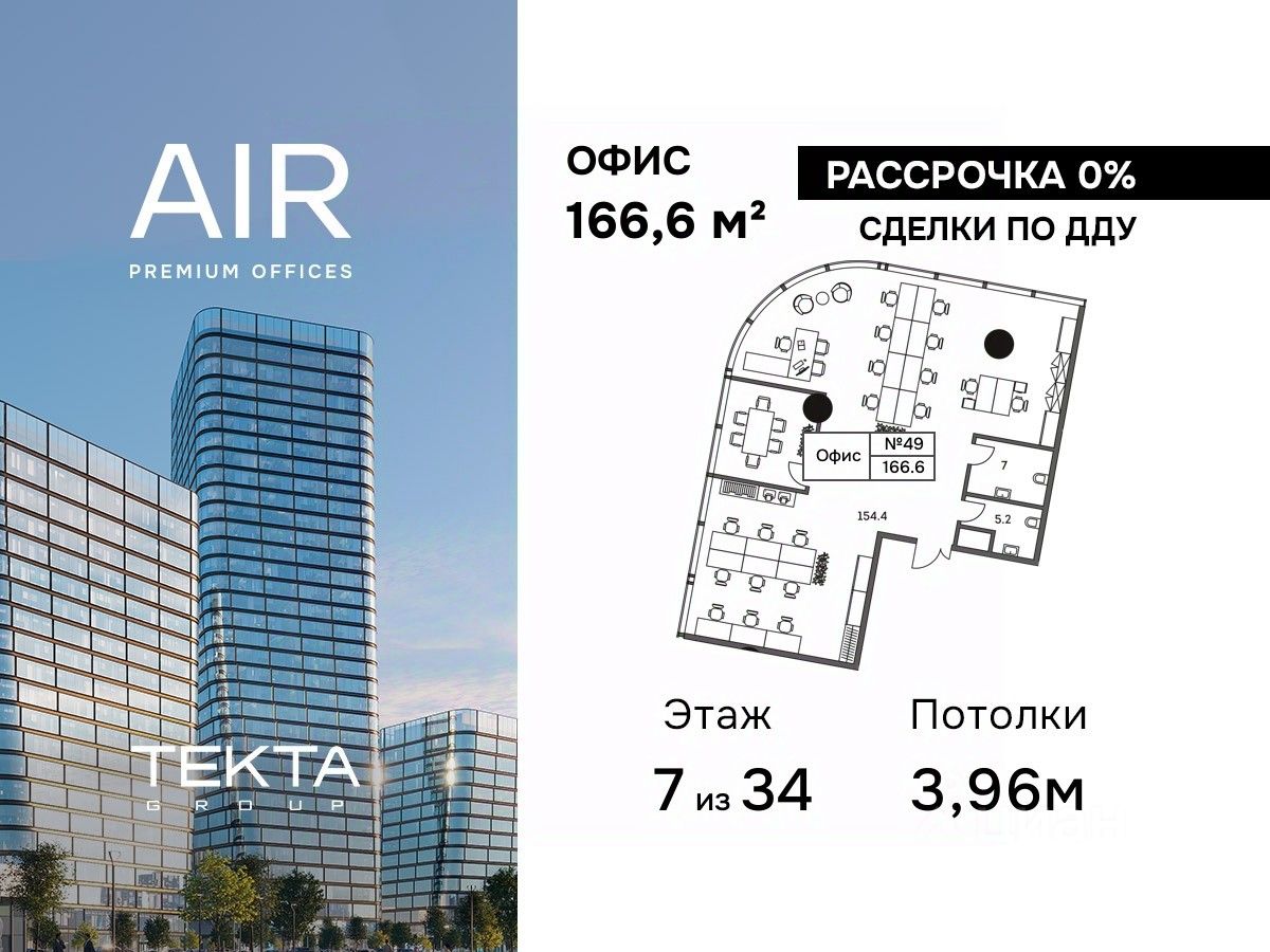 Продается помещение свободного назначения 166.60 м² на 7 этаже бизнес-центра AIR.