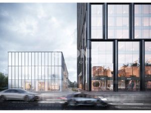 Архитектура от бюро IND. Проектом предусмотрена 23-этажная офисная башня с динамичным фасадом, а также торговая галерея с панорамным остеклением. Общая площадь бизнес-центра составит 49 тыс. кв. м.