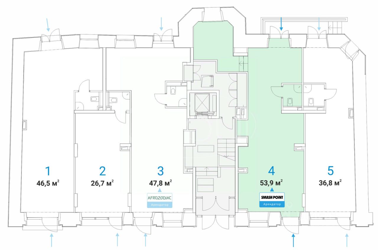 Помещение имеет отдельную входную группу с фасада и дополнительный вход со двора. Здесь предусмотрены все необходимые городские инженерные коммуникации, а энергоснабжение достаточно для любого вида деятельности.