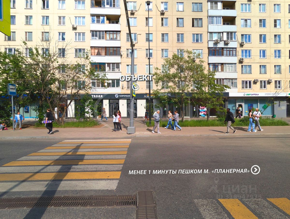 Помещения находятся в крупном жилом районе с высокой плотностью застройки и развитой инфраструктурой. Рядом с объектом расположены транспортно-пересадочный узел и торговый центр "Планерная". ТПУ "Планерная" включает в себя 6 этажей, автовокзал, платную парковку на 600 машиномест, галерею и супермаркет. Пассажиропоток станции составляет до 15 000 человек в час, что увеличивает потенциал арендатора.