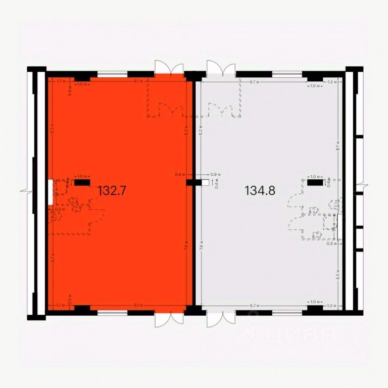 - Открытая планировка, возможно объединить несколько помещений
