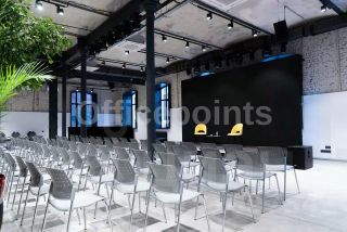 В помещении стандартная отделка, открытая планировка, арочные окна, сводчатые потолки. Центральная система кондиционирования и приточно-вытяжная система вентиляции. В наличии наземная парковка (15 000 руб. в месяц за м/место).