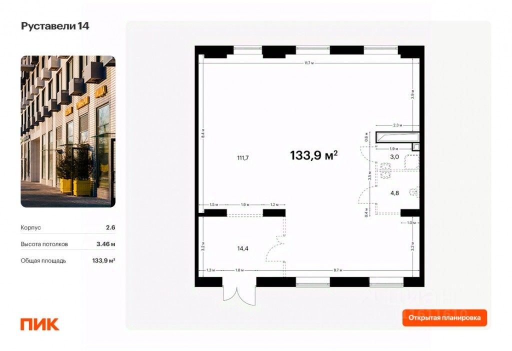 Продаётся нежилое помещение свободного назначения в новом жилом районе Руставели 14 от ПИК. Открытая планировка, витринное остекление, удобный вход на уровне земли. Помещение номер 7. Продажа напрямую от застройщика.