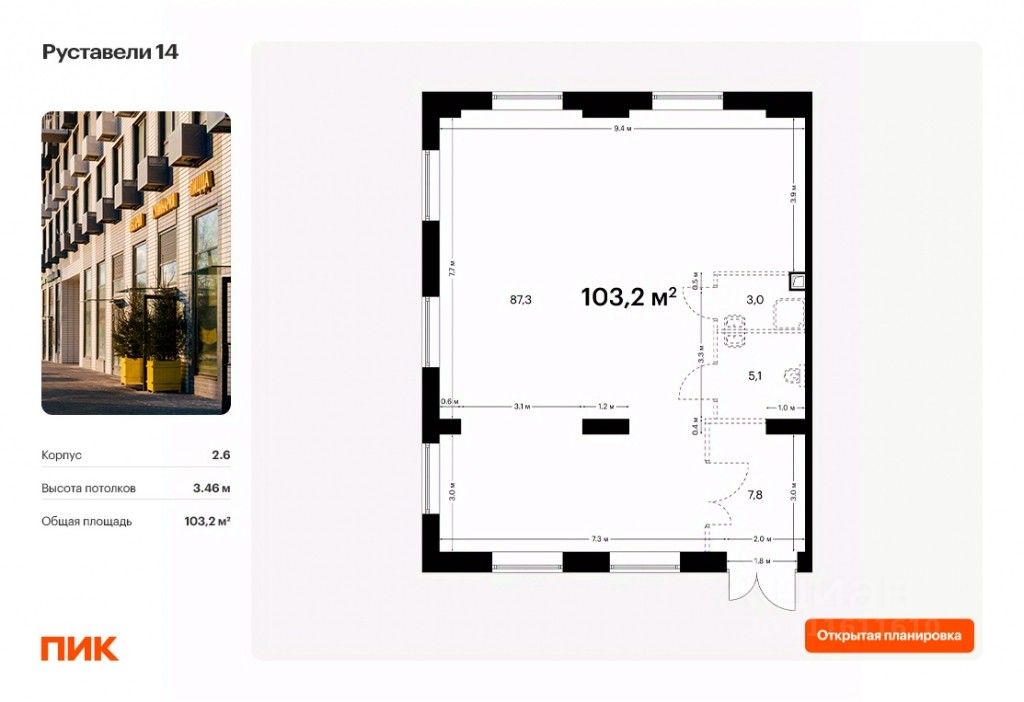Продаётся нежилое помещение свободного назначения в новом жилом районе Руставели 14 от ПИК. Открытая планировка, витринное остекление, удобный вход на уровне земли. Помещение номер 11. Продажа напрямую от застройщика.