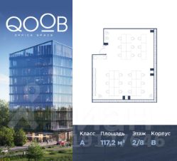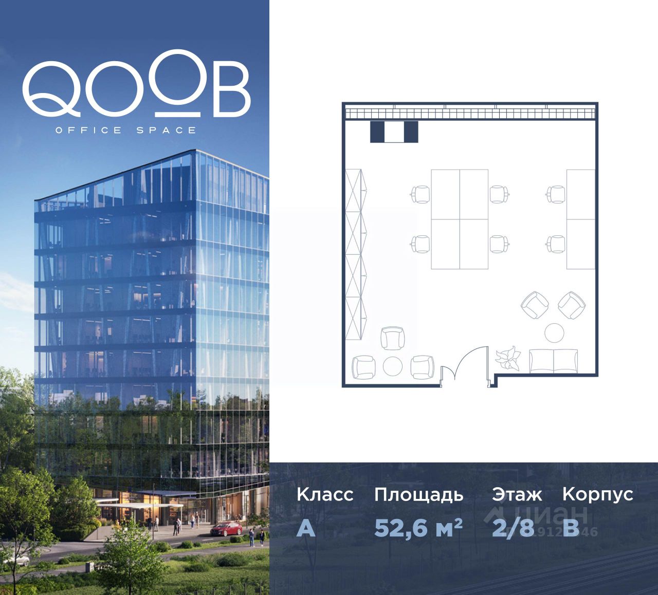 Продается офисное помещение площадью 52,6 м2 на 2 этаже, в бизнес-центре QOOB от застройщика Dominanta.