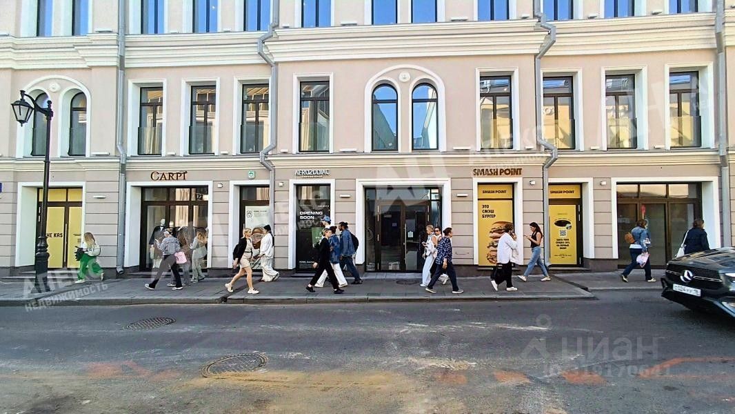 Интенсивный пешеходный трафик, первая линия, престижный район Патриарших прудов в историческом и деловом центре Москвы, в непосредственной близости расположены бизнес-центры и элитные ЖК.