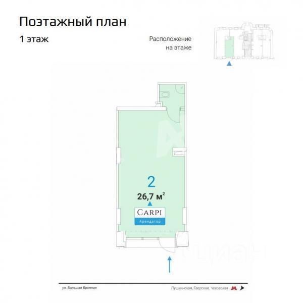 Лот 876836-Г Предложение от Собственника! Возможно использовать как арендный бизнес. Продаётся готовый арендный бизнес, помещение свободного назначения всего в 2 мин. пешком от станций метро "Тверская", "Пушкинская" и "Чеховская". Арендатор - бутик женской одежды "Capri", МАП - 775 000 руб.
