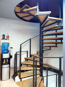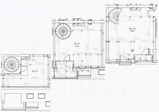 1-ый уровень - 42,5 м.кв. вход в помещение на уровне 3-го этажа. Расположен сан.узел, французский балкон, помещение для приема пищи, винтовая лестница.