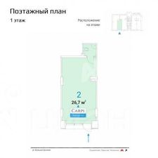 Отдельный вход с улицы, витринное окно, открытая планировка, высота потолков 4.3 м.