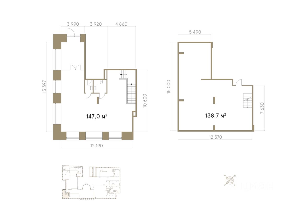 - высокие потолки 3,9 - 4,15 м;