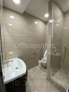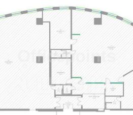 2 часть (200 кв.м.): качественная офисная отделка, кабинетная планировка (2 больших угловых кабинета, открытое пространство, разделенное пополам стеклом, кабинет руководителя с собственной душевой, 2 с/у).