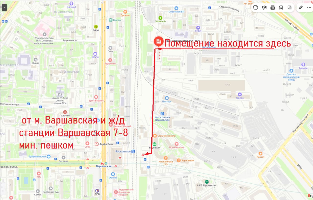 Продается помещение свободного назначения в 7-8 мин. пешком от м. Варшавская и ж/д станции Варшавская.