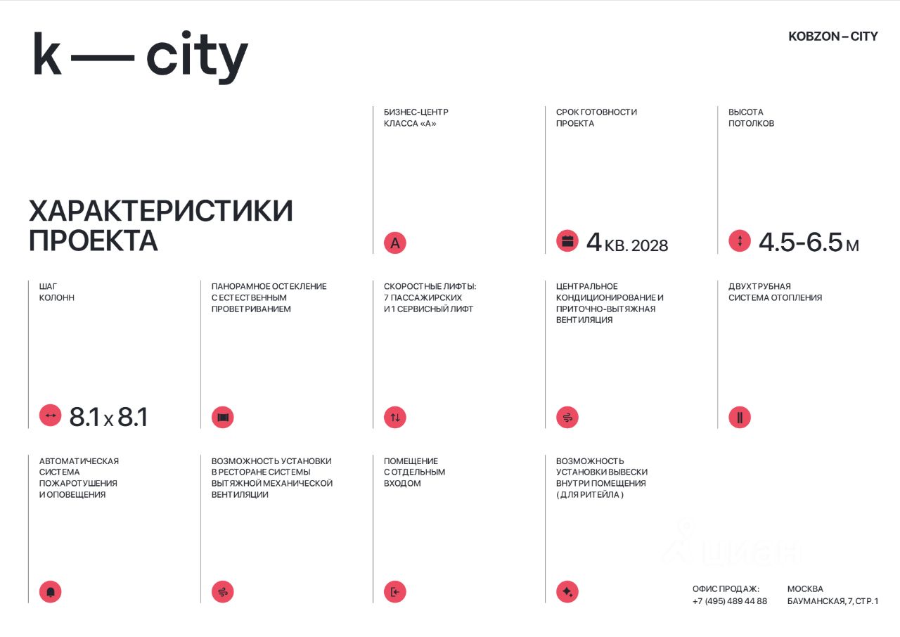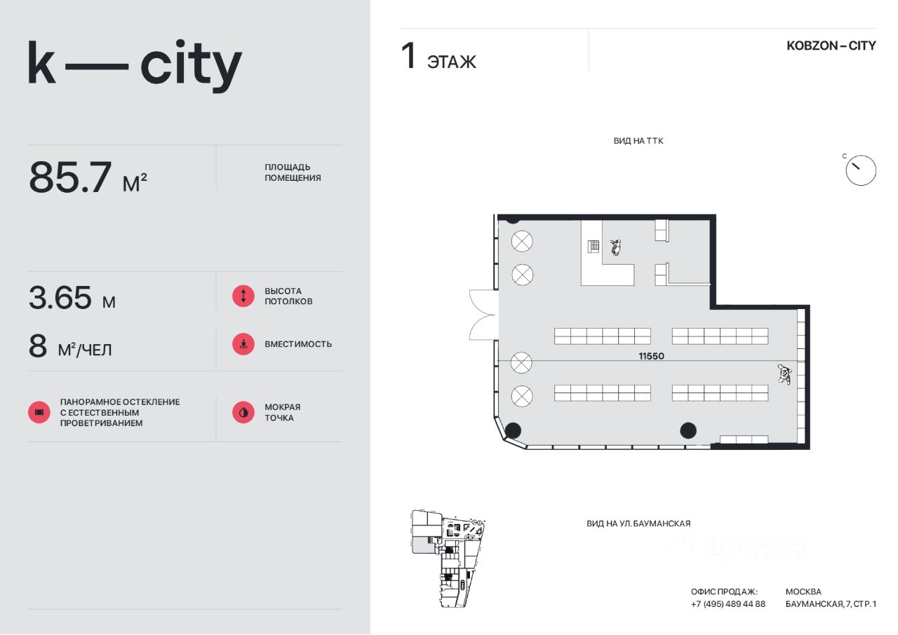 Приобретайте стрит-ритейл в бизнес-центре класса "А" КОБЗОН СИТИ (K-СIТY) напрямую от застройщика. Это ликвидный и высокодоходный актив, чья ценность обеспечена уникальной локацией на Бауманской - отсутствием конкурентного предложения в новых бизнес-центрах и стабильно высоким трафиком: • 25 000 человек - жители ближайших ЖК и апартаментов и резидентов соседних бизнес-центров; • 102 000 человек ежедневного пассажиропотока метро "Бауманская"; • 6 500 резидентов бизнес-центра ; • Посетители уникального арт-хаба в составе проекта, который создаст дополнительный поток клиентов в вечернее время и выходные дни. Проект обладает идеальной транспортной доступностью: • 5 минут пешком до м. Бауманская • 100 метров до ТТК • Прямая доступность от ТПУ "Площадь трех вокзалов" как в Подмосковье, так и в центр города. Лот с отделкой Shell&Core и свободной планировкой идеально подойдет для салона красоты, ресторана, кафе, шоу-рума или студии. Ключевые преимущества: • Витринное панорамное остекление • Место для брендированной вывески на фасаде • Свободный вход • Высокие потолки Инвестируйте в стабильный трафик и отсутствие конкуренции.