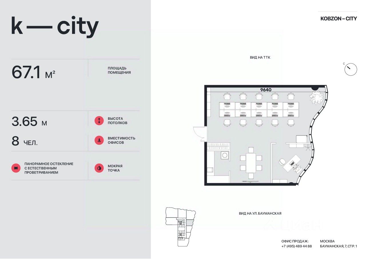 Офис 67 м2 в новом БЦ класса А K-CITY на Бауманской от Застройщика. Оптимальный компактный вариант для размещения на 5-7 человек. В 5 мин. пешком от м. "Бауманская", в 1 мин. от ТТК!