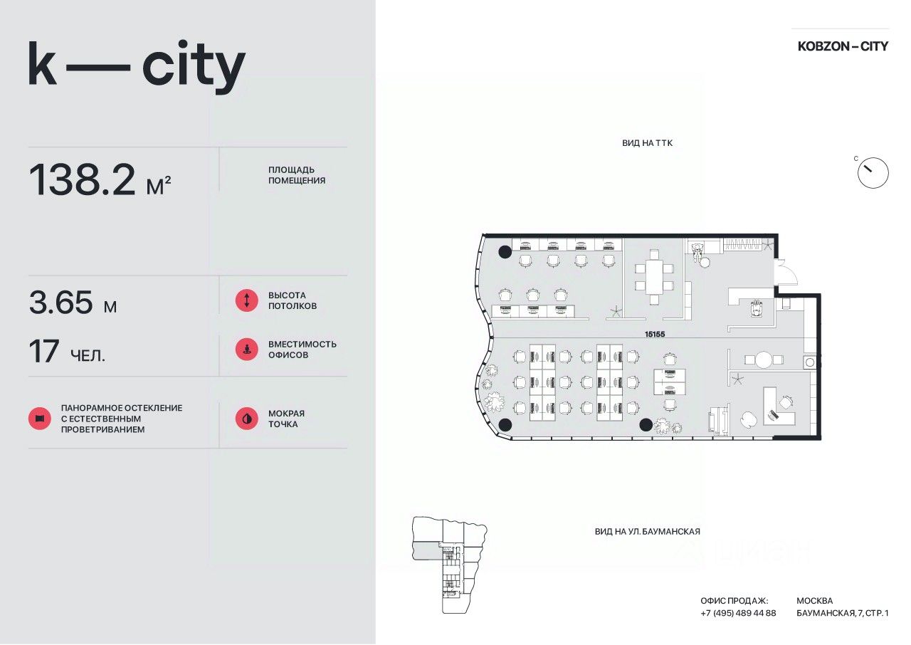 KOBZON CITY (K-CITY) - единственный БЦ класса А в локации Бауманской! Продажа офисов от застройщика.