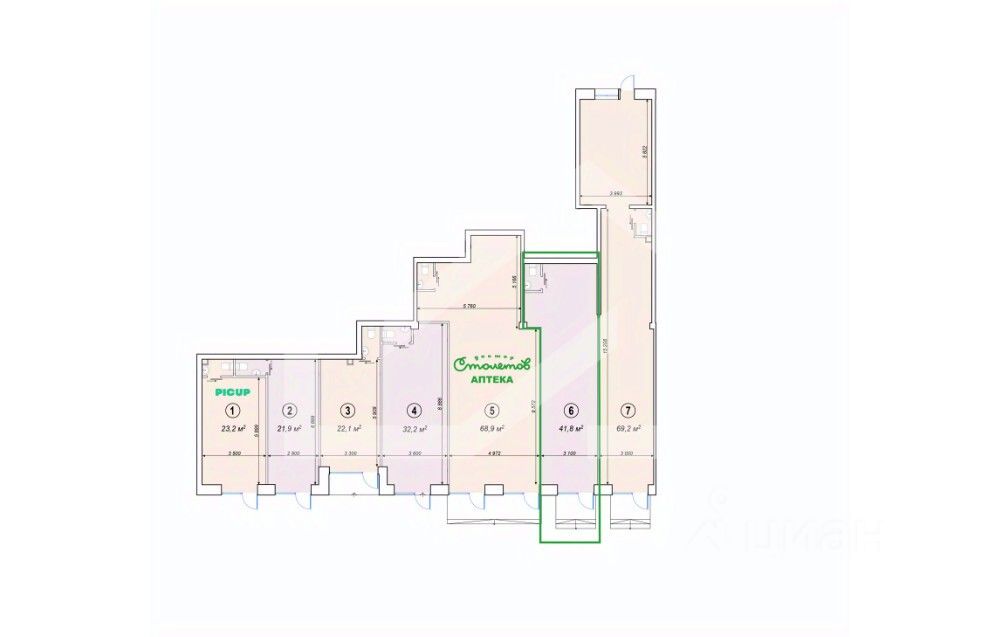 979262 . Предлагаем помещение свободного назначения формата street-retail, площадью 41.8 кв. м, расположенное на первом этаже 14-этажного жилого дома. Без комиссии для покупателя.
