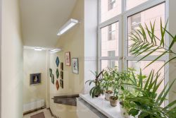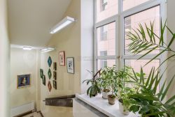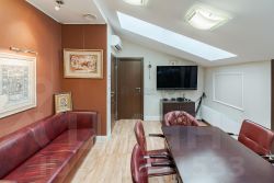 пятый этаж оборудован залом для переговоров, просторной кухней. Кроме этого, 4 кабинета и санузел. Во всем здании большие окна ПВХ, на последнем этаже- мансардные.