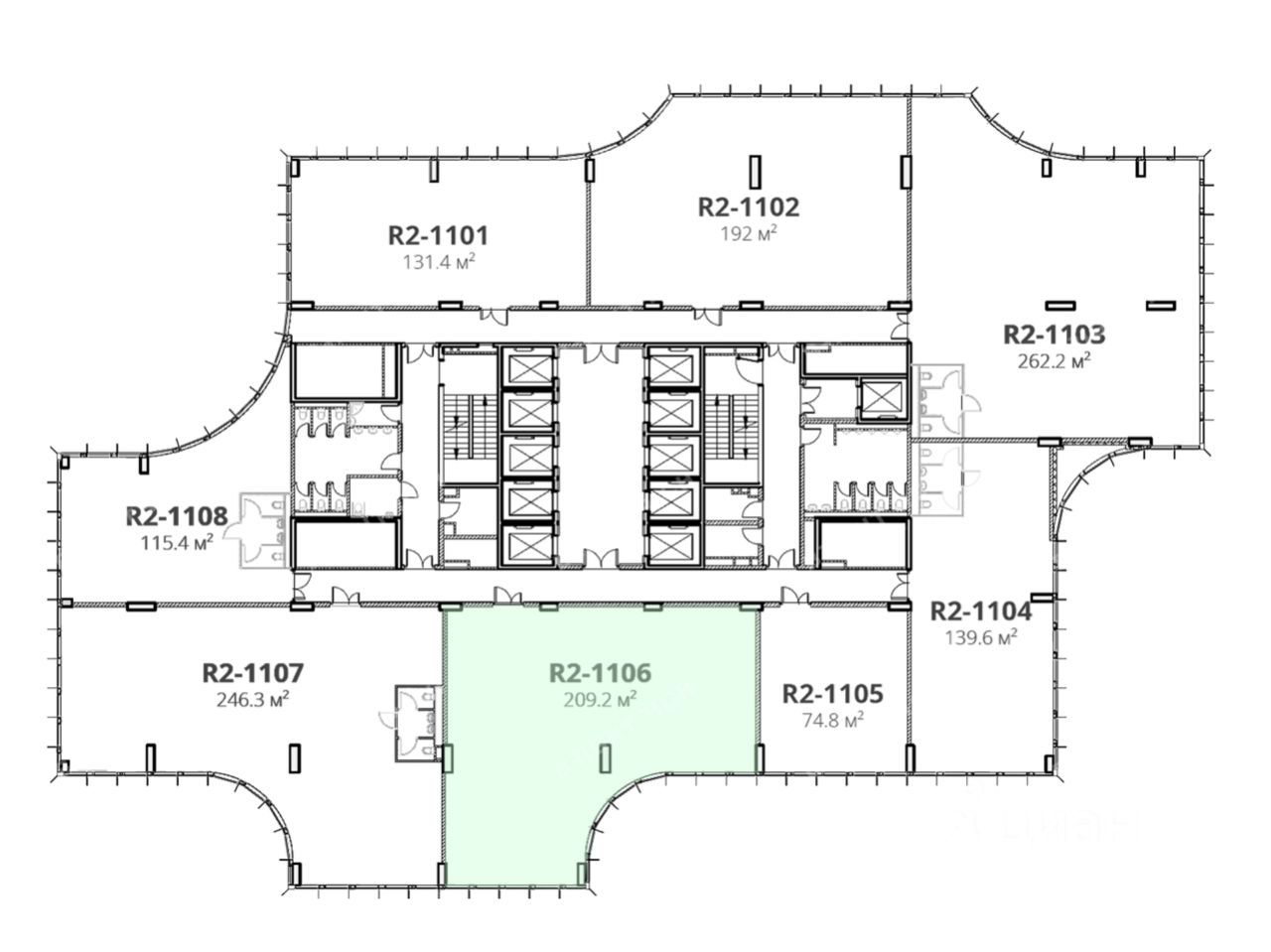 Офисное помещение 209.2 кв. м в бизнес-центре "STONE Римская". Прямая продажа, без комиссии. Объект на стадии активного строительства, готовность ко въезду уточняется по запросу.