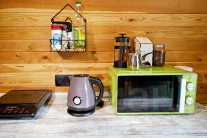 В каждом домике имеется зона спальни, зона кухни, совмещенный с/у с душевой кабиной.