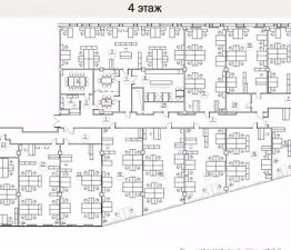 Офис смешанной планировки разделен на 13 блоков и рассчитан на 250 рабочих мест. Есть 4 переговорные и два помещения под обеденную зону. Санузлы расположены в местах общего пользования при входе в офисный блок.
