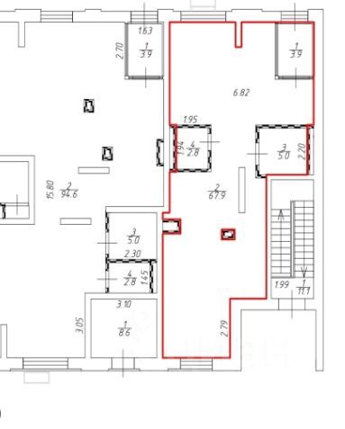 Общая площадь помещения - 79,6 м2, первый этаж, 1 отдельная входная группа, открытая планировка, витринные окна, высота потолка - 4,05 метра, электрическая мощность 16 кВт.