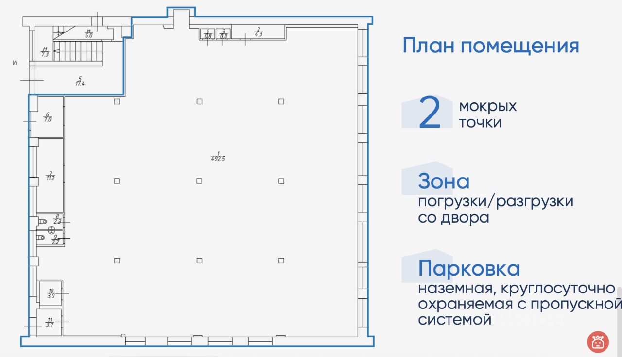 2 санузла • Зона погрузки/разгрузки