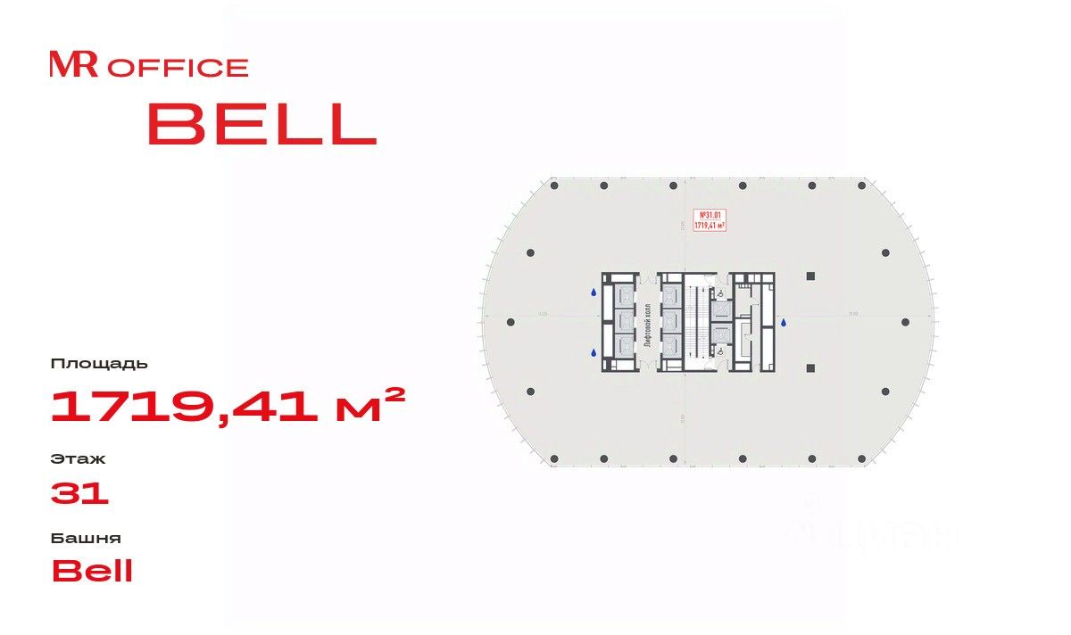 Продается офисное помещение 1719.41 кв.м на 31 этаже в новом небоскребе класса Prime — БЦ BELL на Белорусской от бренда MR Office.