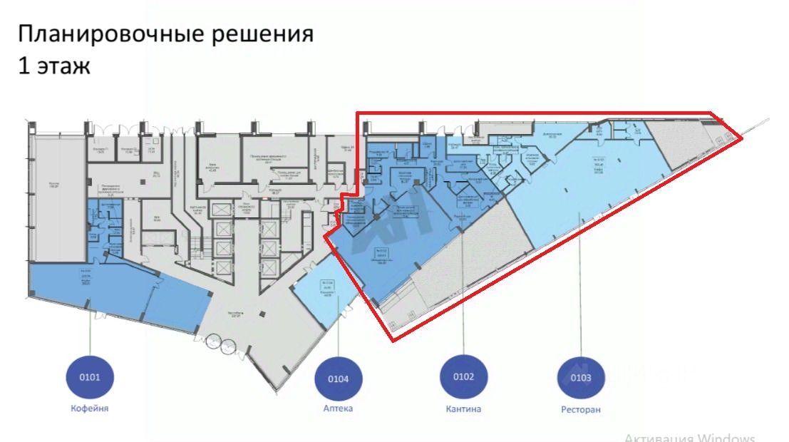 Лот 884720 Продается помещение свободного назначения на первом этаже нового премиального бизнес-центра класса А "PORTA". Общая площадь объекта составляет 710,4 кв. м. Помещение идеально подойдет для организации ресторана, кафе или столовой.