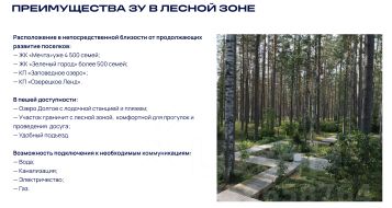 Участки: 50:04:0110301:111 — площадь 0,5 Га; 50:04:0110301:112 — площадь 1,9 Га; 50:04:0110301:113 (часть) — площадь 0,8 Га Общая площадь 3,2 Га. Стоимость - 950 000 руб. за сотку Назначение: — под жилую застройку; — размещение объектов культурно-бытового, социального назначения; — административных зданий, коммунально-складских объектов; — инженерной и транспортной инфраструктуры, — рекреационных зон. Планируемое использование: — спорт, СПА, гостиничный комплекс, глэмпинг, зоны отдыха