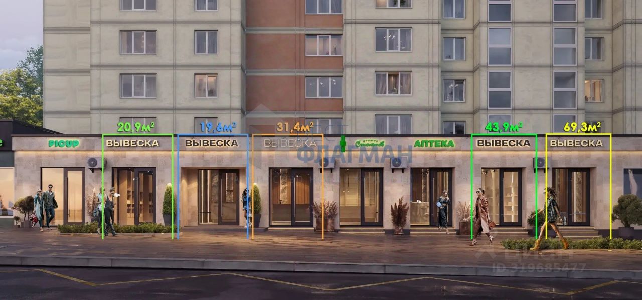 Арт. 110533585 Продается помещение свободного назначения 41,8 кв.м. на 1 этаже 14ти этажного жилого дома на первой линии Ярославского шоссе
