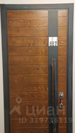 В холле дизайнерская отделка из шпона и колонны с деревянными панелями.