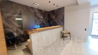 Зона ресепшн декорирована плиткой, имитирующей камень.
