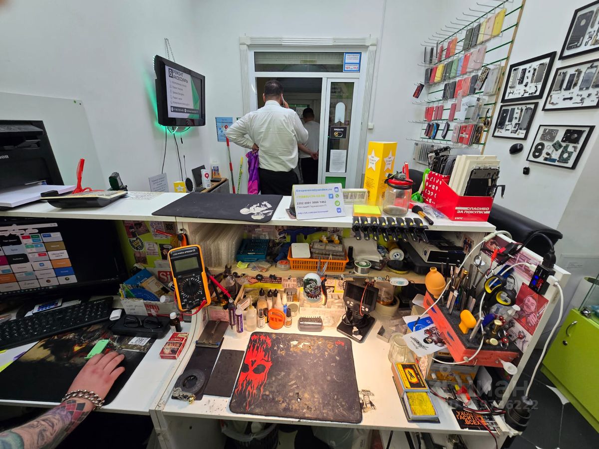 *Оснащение:* Всё необходимое оборудование для ремонта (паяльные станции, микроскопы, инструменты, запчасти и т. д.)