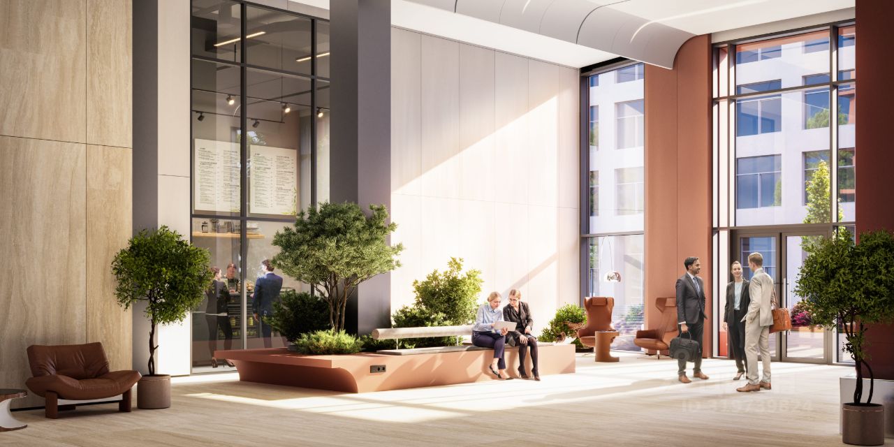 - На первых этажах офисных зданий просторные лобби с комфортной зоной ожидания, супермаркет, торговые помещения, отделения банков и сервисных служб, фитнес-студия