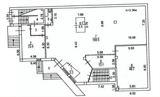 Описание помещения: Всего в здании 3 уровня общей площадью - 1023,8 м2. Цокольный этаж - 340 м2,