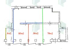 Помещение делится на 4 и более площади, с возможностью оборудования независимых входных групп.
