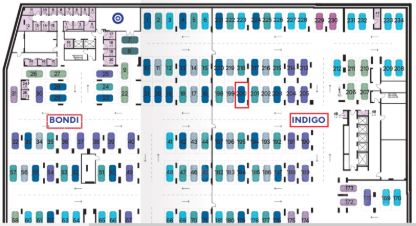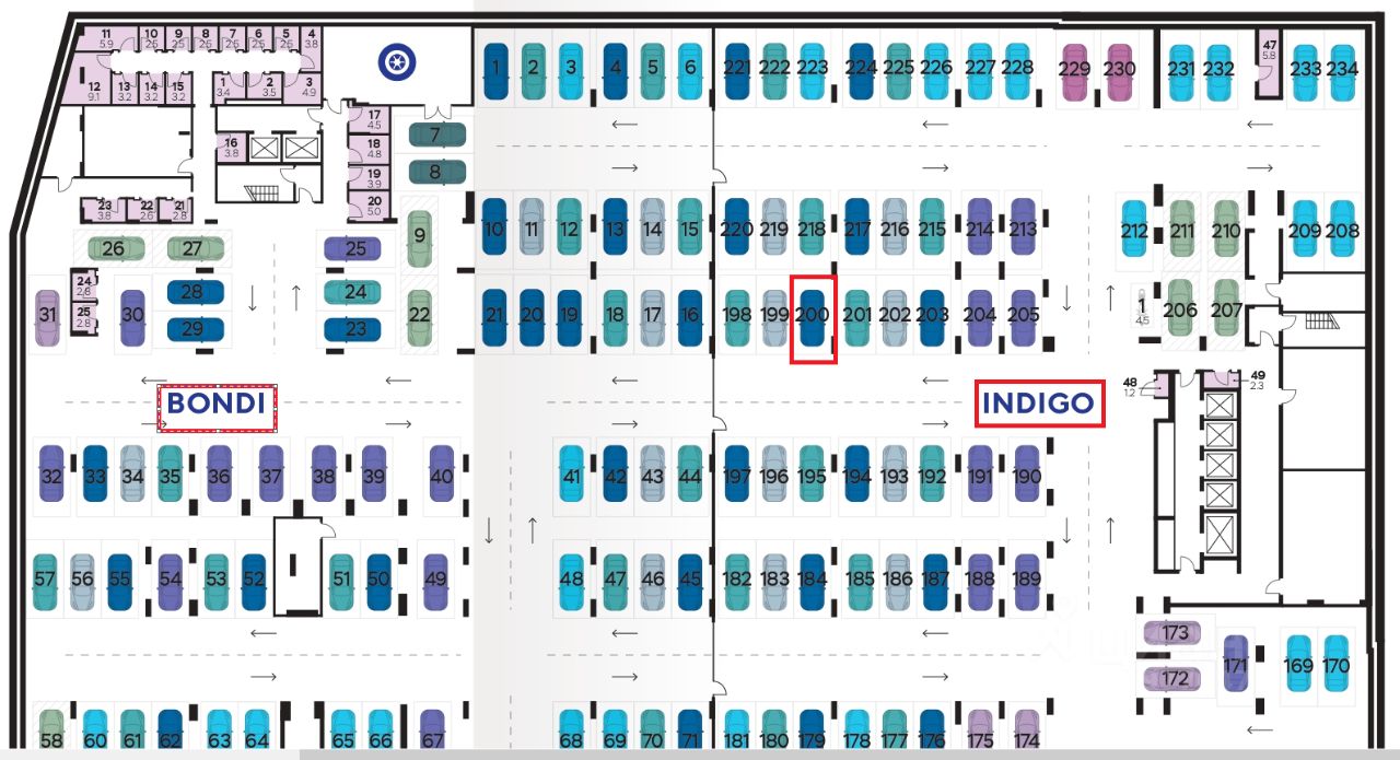 Машиноместо расположено между INDIGO и BONDI, но ближе к INDIGO.