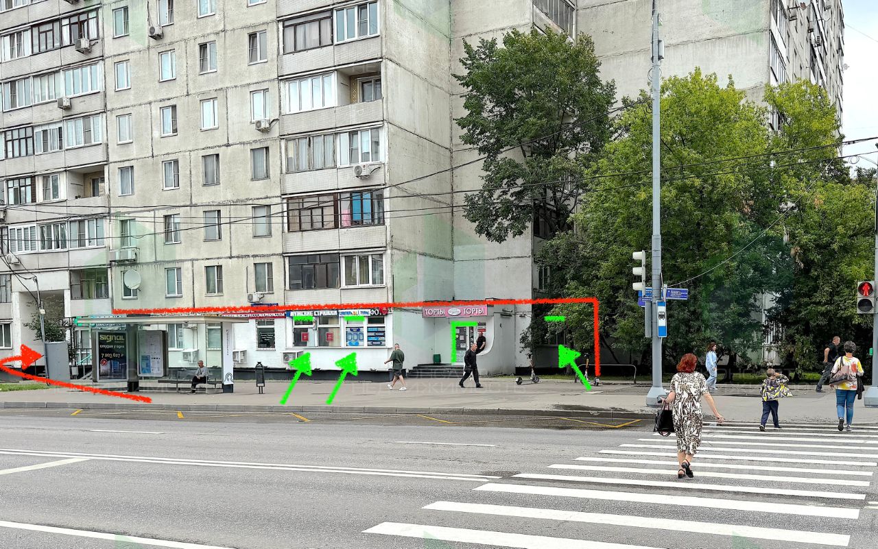1-я линия, 1-й этаж, в плотно застроенном жилом массиве, интенсивный пешеходный поток от и до по прямой м. Фонвизинская 5 мин., пешком.