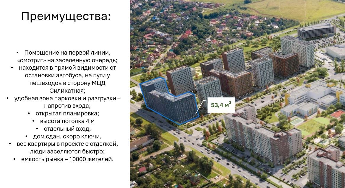Находится в прямой видимости от остановки автобуса, на пути у пешеходов в сторону МЦД Силикатная; удобная зона парковки и разгрузки напротив входа;
