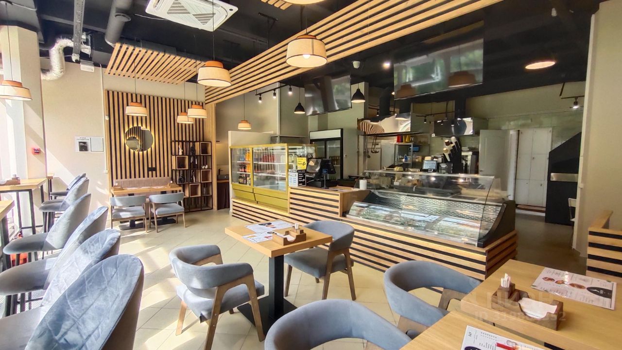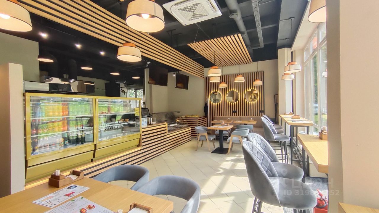 * Площадь 83 м² - разделено на зоны: зал для гостей, кухня и подсобные помещения, 2 с/у - для гостей и отдельно для персонала.