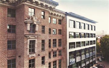 Представляет собой отдельно стоящее здание на территории делового-центра "Бейкер Плаза". При строительстве и отделке бизнес-центра применялись высококачественные и современные материалы и технологии, холлы и общие зоны здания имеют неповторимый стиль и эксклюзивный дизайн. Просторные стеклянные атриумы обеспечивают максимальное освещение офисного пространства на каждом квадратном метре. Конструктив зданий: несущая сетка колонн 6х6 м., перекрытия из монолитного железобетона, высота потолков 4,2 м., максимальная нагрузка на перекрытия 400 кг./кв.м..