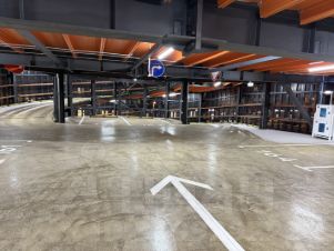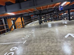 На 3й этаж удобно въезжать, всего 2 пролета. Широкий винтовой заезд, с ограничениями, удобный.