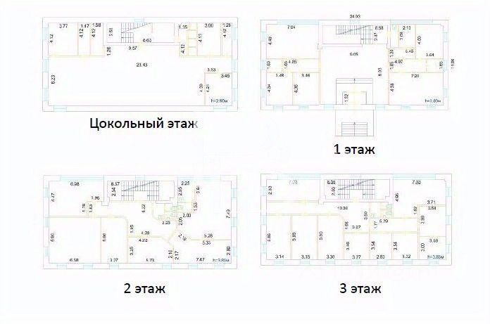 Общая площадь составляет 969 м2 (3 этажа + цоколь)