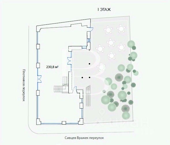 К покупке предлагается отдельно стоящее здание расположено в самом центре Москвы, на пересечении переулков Плотникова и Сивцев Вражек, всего в 200 метрах от Министерства иностранных дел РФ и четырех минутах пешком от станции метро "Смоленская". Интенсивный пешеходный и автомобильный трафик. На первой линии домов.