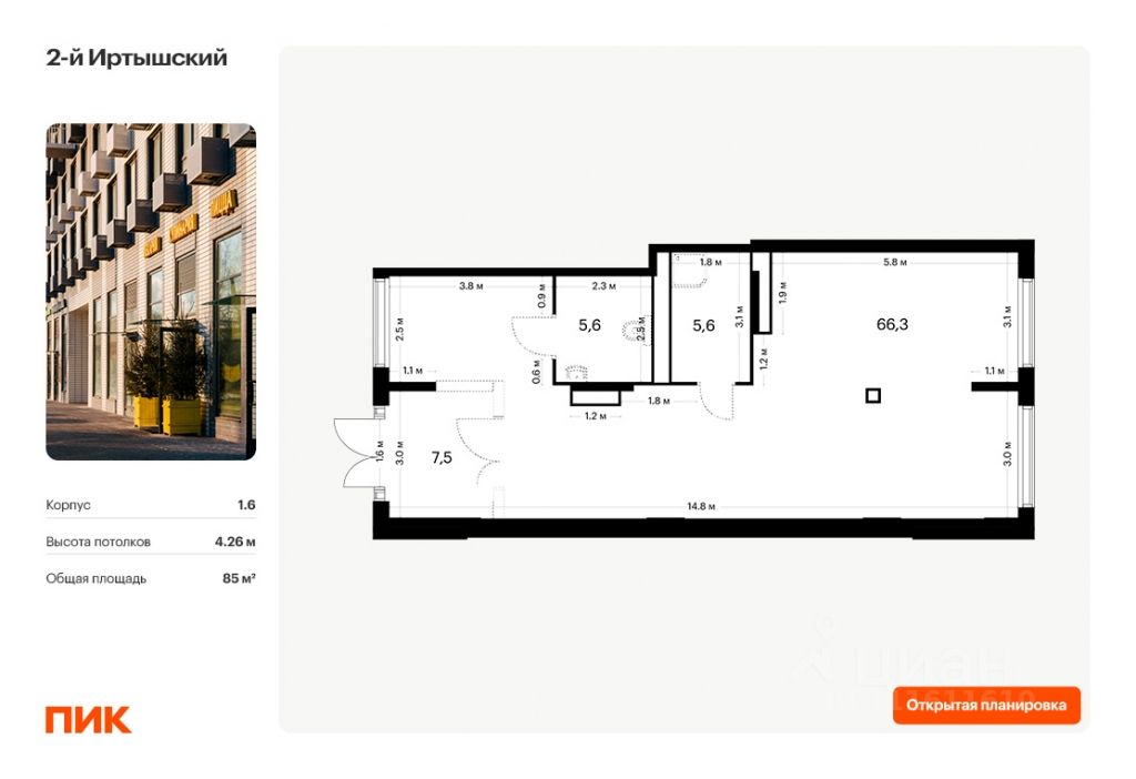Выгода 5% на готовое помещение по промокоду KEY5 до 30 сентября. Продаётся нежилое помещение свободного назначения в новом жилом районе 2-й Иртышский от ПИК. Открытая планировка, витринное остекление, удобный вход на уровне земли. Помещение номер 10. Продажа напрямую от застройщика.
